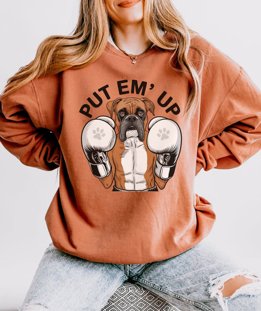 Boxer with Gloves, Put Em Up Cute Dog Lover Sweatshirt